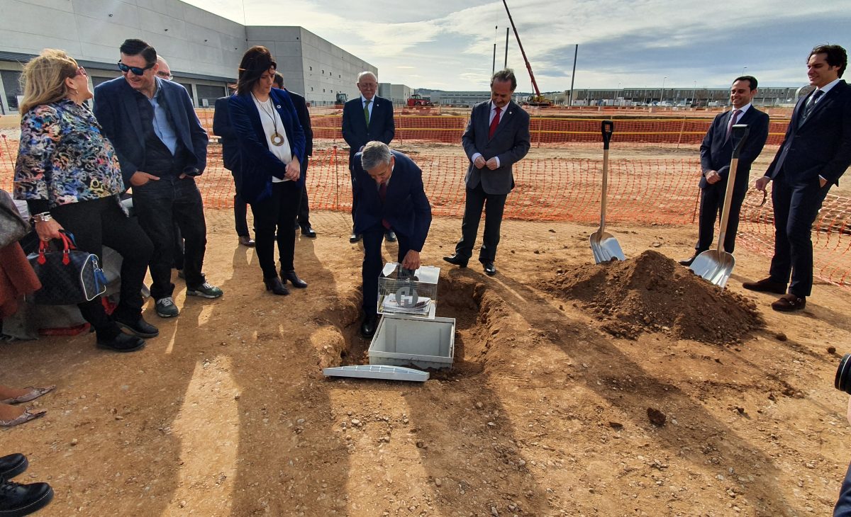 El presidente y el director general de Grupo de distribución farmacéutica Hefame, Carlos Coves y Javier López, han colocado en Riba-roja la primera piedra del que será su segundo centro regulador en España, después de Santomera, que abrirá a comienzos de 2021 tras una inversión de más de 22 millones de euros.